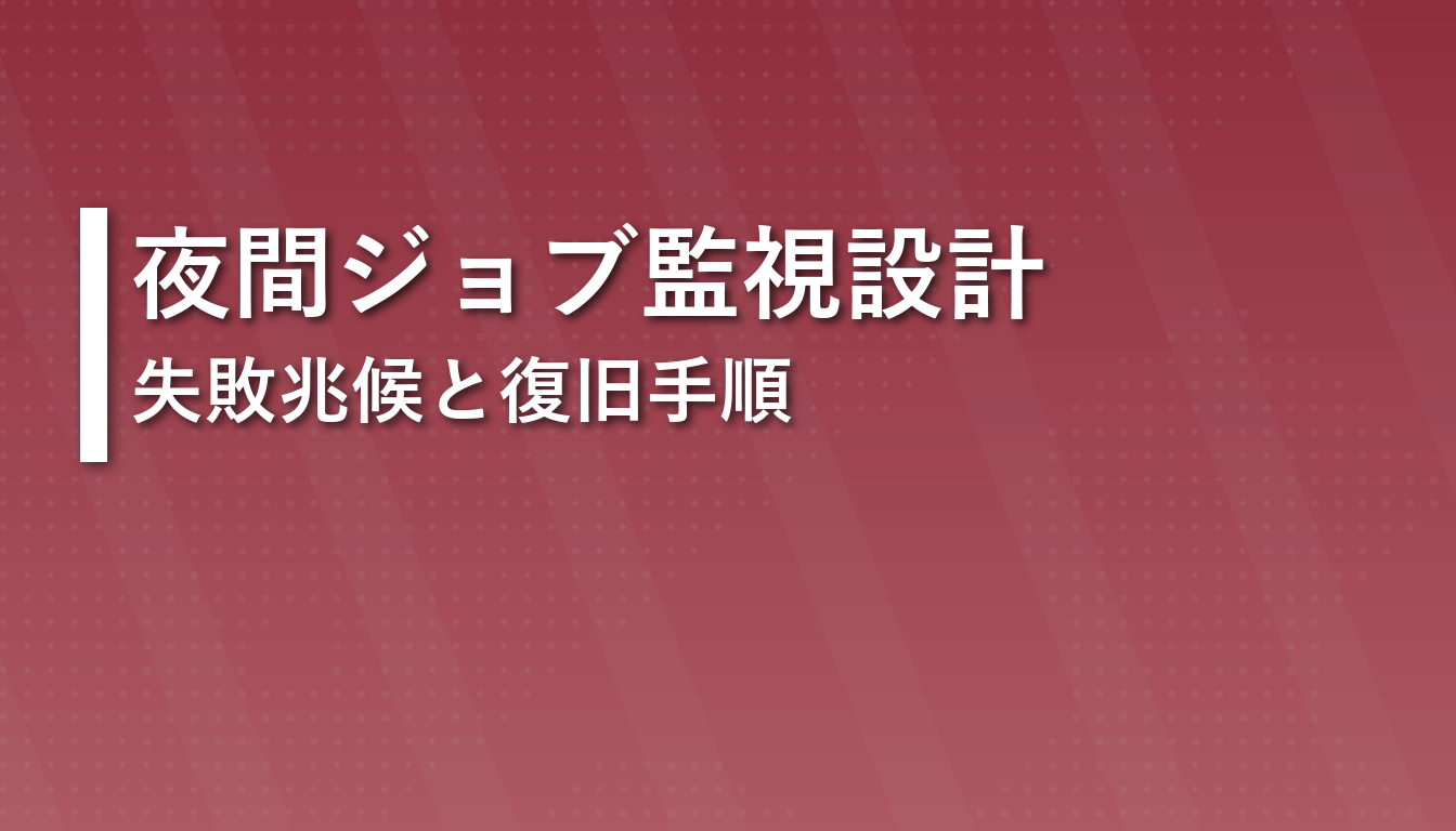 夜間運用の監視は、細かい指標を増やすより、継続比較できる少数指標を固定する方が停止予防に効きます。