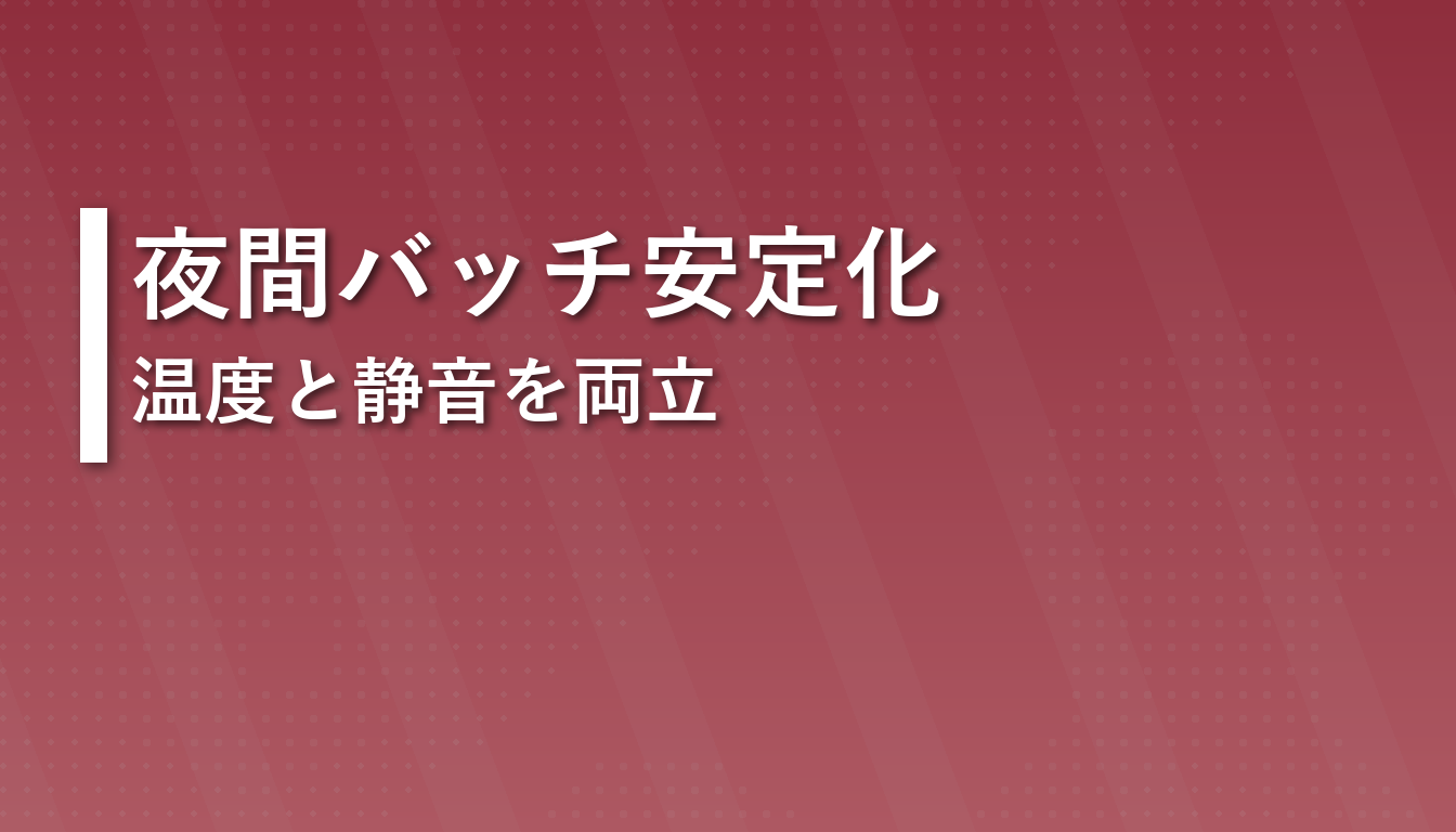 夜間バッチ生成を安定させる鍵は、性能を上げることより失敗条件を固定して運用を設計することです。温度上限、停止条件、比較手順を先に決めれば、交換投資の優先順位が明確になり、再試行の時間を大きく減らせます。結果として、静音と安定性を両立した継続運用が実現しやすくなります。